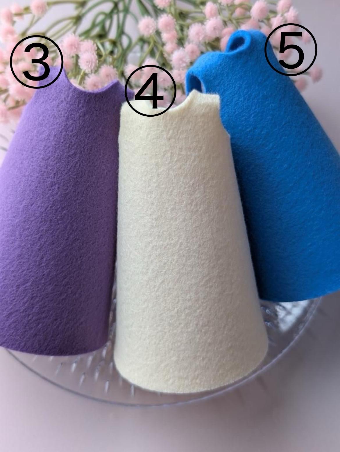 ①赤 ②ピンク ③青 ④紫 ⑤アイボリー